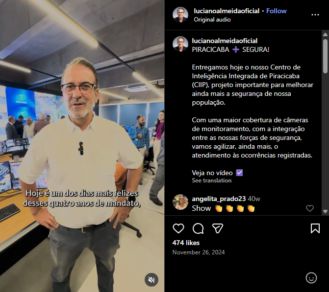 A Fraga de Medeiros participou do projeto pioneiro do Centro de Inteligência Integrada de Piracicaba (CIIP), recentemente inaugurado.